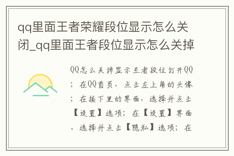 qq里面王者榮耀段位顯示怎么關閉_qq里面王者段位顯示怎么關掉