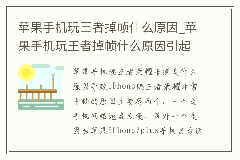 蘋果手機玩王者掉幀什么原因_蘋果手機玩王者掉幀什么原因引起的