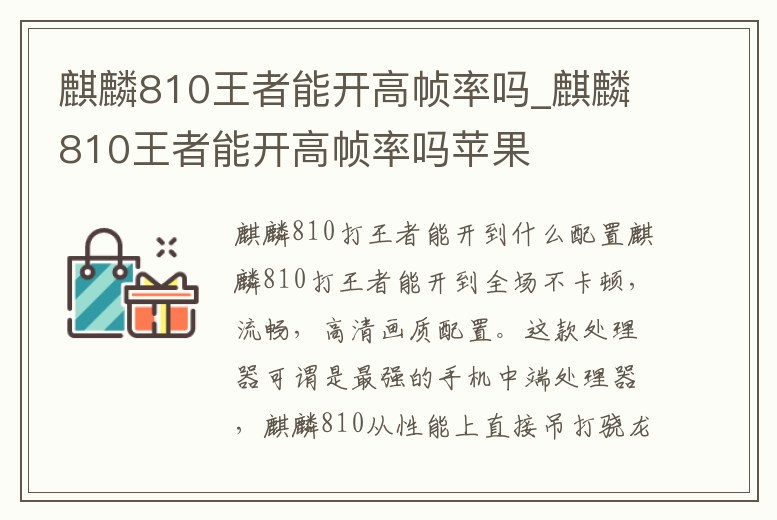 麒麟810王者能開高幀率嗎_麒麟810王者能開高幀率嗎蘋果
