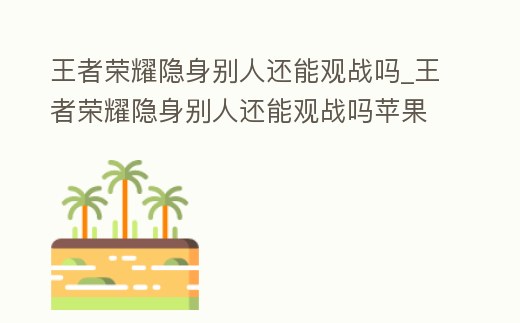 王者榮耀隱身別人還能觀戰嗎_王者榮耀隱身別人還能觀戰嗎蘋果