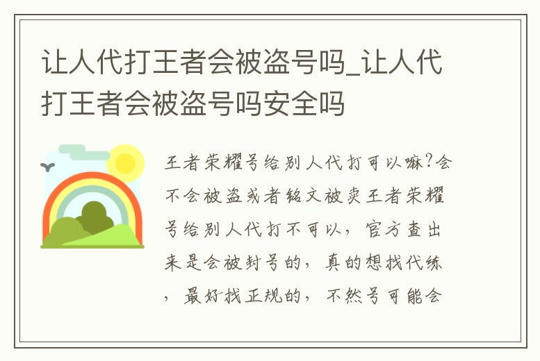 王者榮耀號給別人代打可以嘛?會不會被盜或者銘文被賣