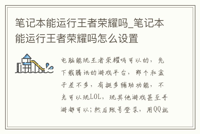筆記本能運行王者榮耀嗎_筆記本能運行王者榮耀嗎怎么設置