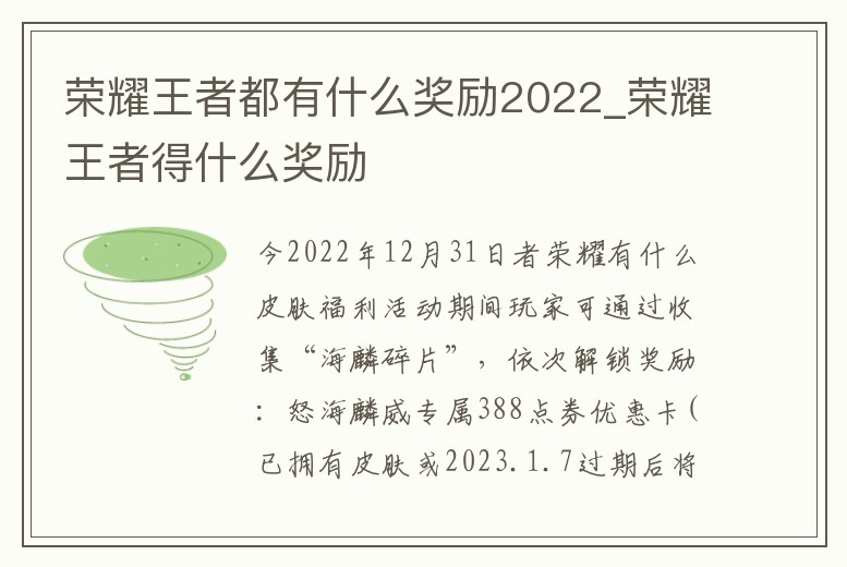 今2022年12月31日者榮耀有什么皮膚福利