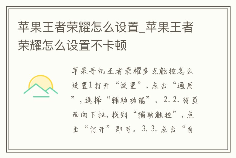- 蘋果王者榮耀怎么設(shè)置_蘋果王者榮耀怎么設(shè)置不卡頓