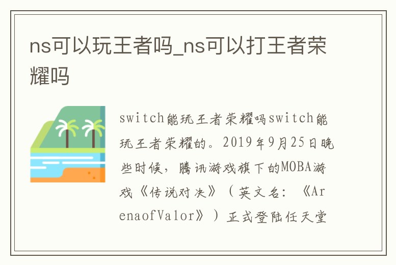 ns可以玩王者嗎_ns可以打王者榮耀嗎