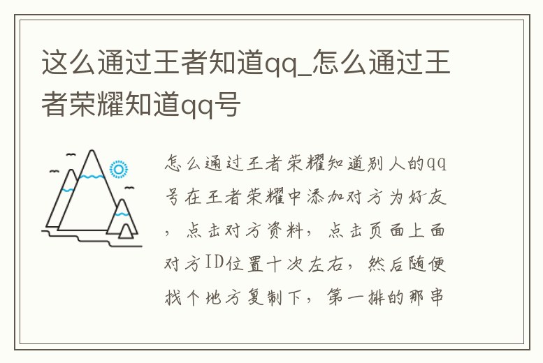 這么通過王者知道qq_怎么通過王者榮耀知道qq號