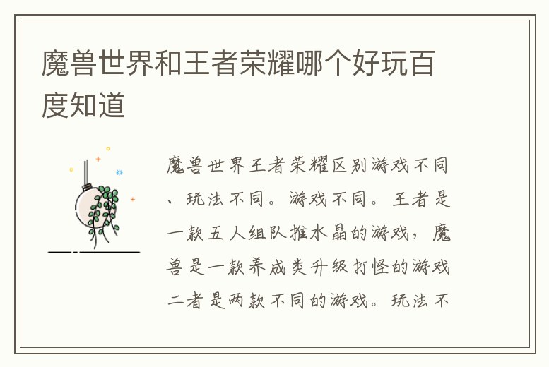 魔獸世界和王者榮耀哪個好玩百度知道