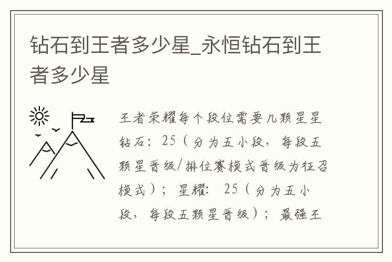 鉆石到王者多少星_永恒鉆石到王者多少星