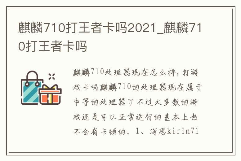麒麟710打王者卡嗎2021_麒麟710打王者卡嗎