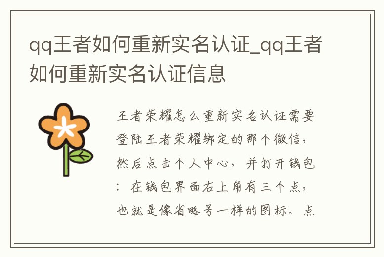 qq王者如何重新實名認證_qq王者如何重新實名認證信息