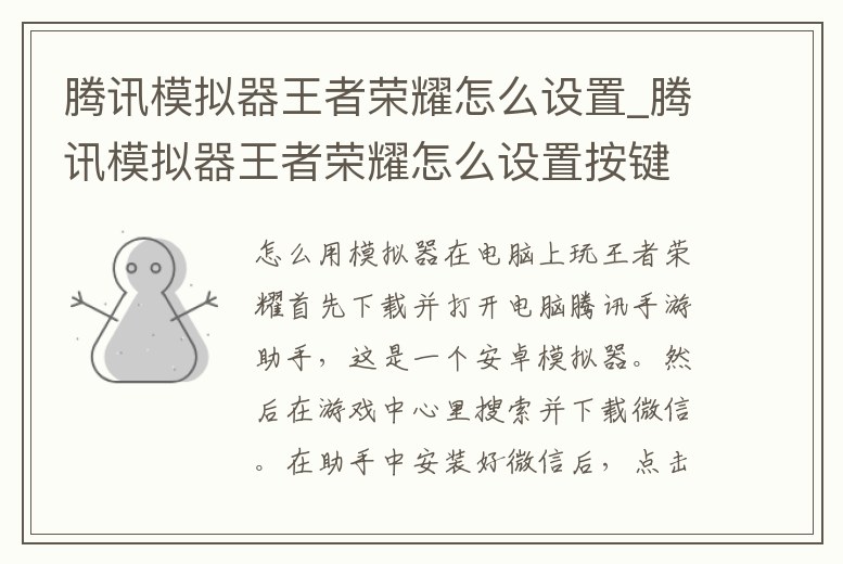 - 騰訊模擬器王者榮耀怎么設(shè)置_騰訊模擬器王者榮耀怎么設(shè)置按鍵連擊功能