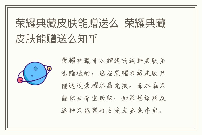 榮耀典藏皮膚能贈送么_榮耀典藏皮膚能贈送么知乎