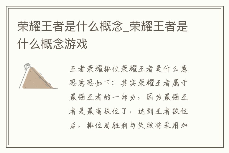 榮耀王者是什么概念_榮耀王者是什么概念游戲