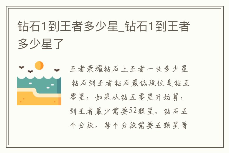 鉆石1到王者多少星_鉆石1到王者多少星了