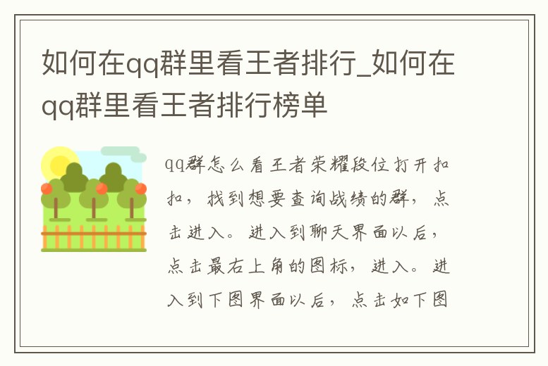 如何在qq群里看王者排行_如何在qq群里看王者排行榜單