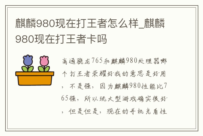 麒麟980現在打王者怎么樣_麒麟980現在打王者卡嗎