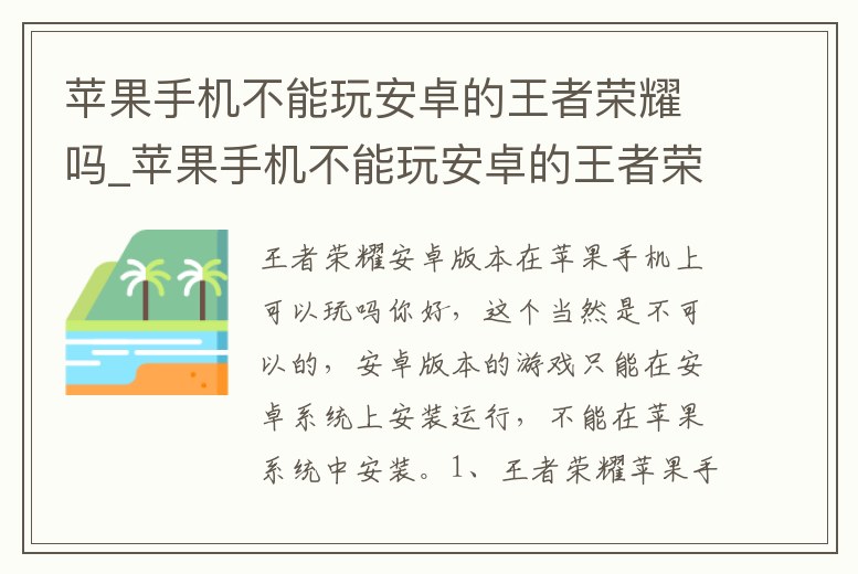 - 蘋果手機不能玩安卓的王者榮耀嗎_蘋果手機不能玩安卓的王者榮耀嗎