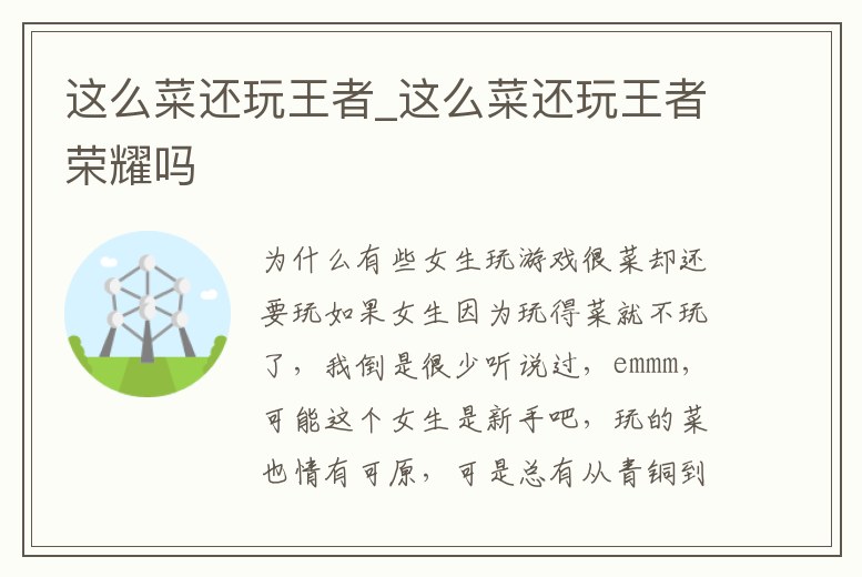 這么菜還玩王者_這么菜還玩王者榮耀嗎
