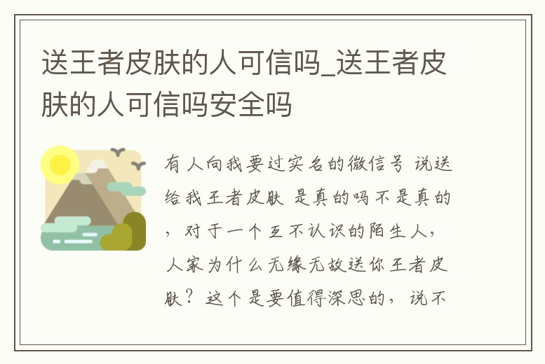 送王者皮膚的人可信嗎_送王者皮膚的人可信嗎安全嗎
