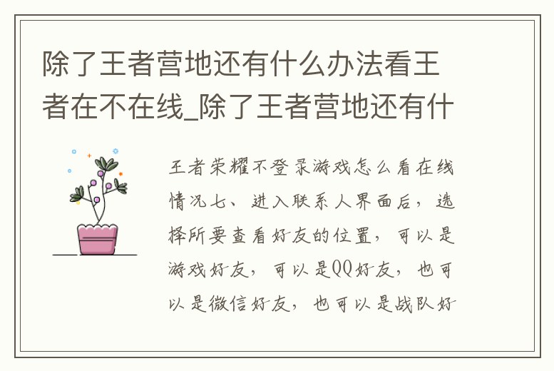 除了王者營地還有什么辦法看王者在不在線_除了王者營地還有什么辦法看王者在不在線狀態