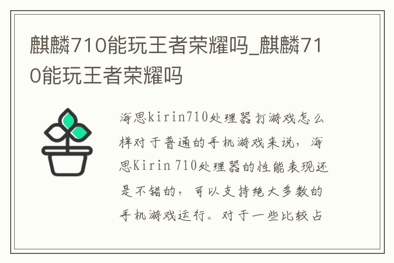 麒麟710能玩王者榮耀嗎_麒麟710能玩王者榮耀嗎