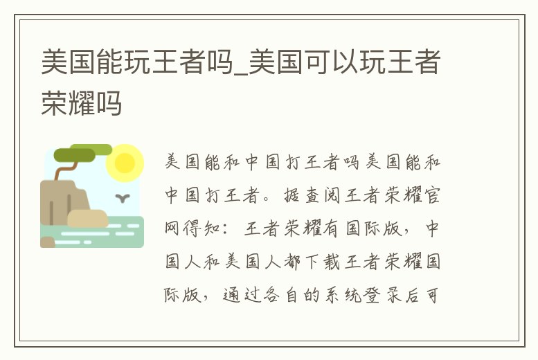 美國能玩王者嗎_美國可以玩王者榮耀嗎
