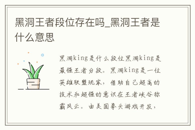 黑洞王者段位存在嗎_黑洞王者是什么意思