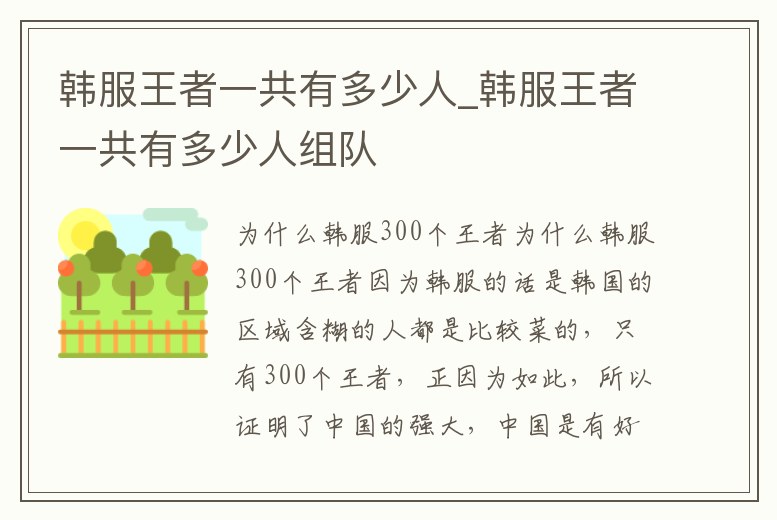 韓服王者一共有多少人_韓服王者一共有多少人組隊