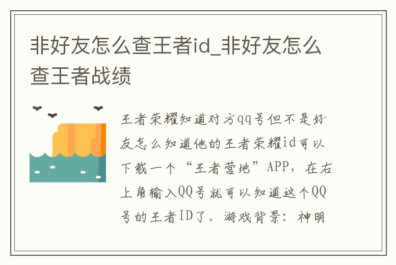 非好友怎么查王者id_非好友怎么查王者戰(zhàn)績