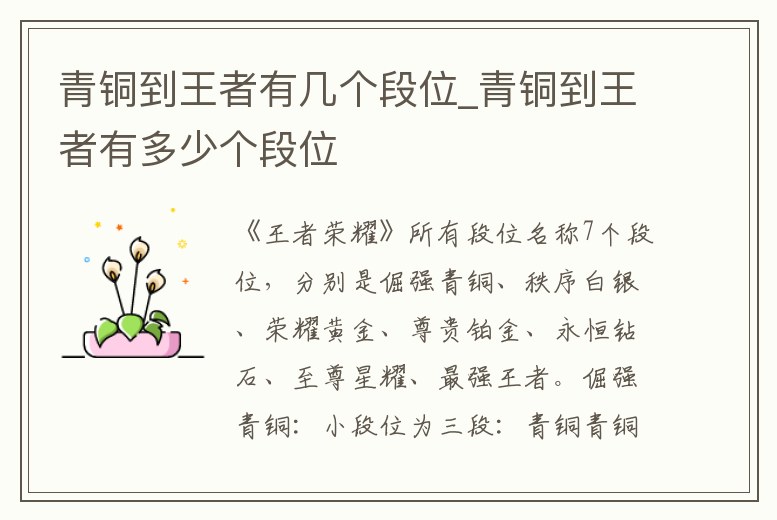 - 青銅到王者有幾個(gè)段位_青銅到王者有多少個(gè)段位