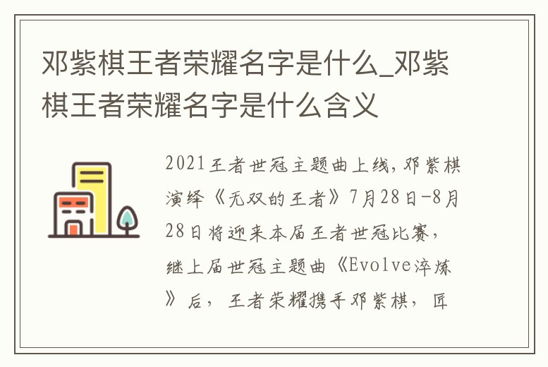 鄧紫棋王者榮耀名字是什么_鄧紫棋王者榮耀名字是什么含義