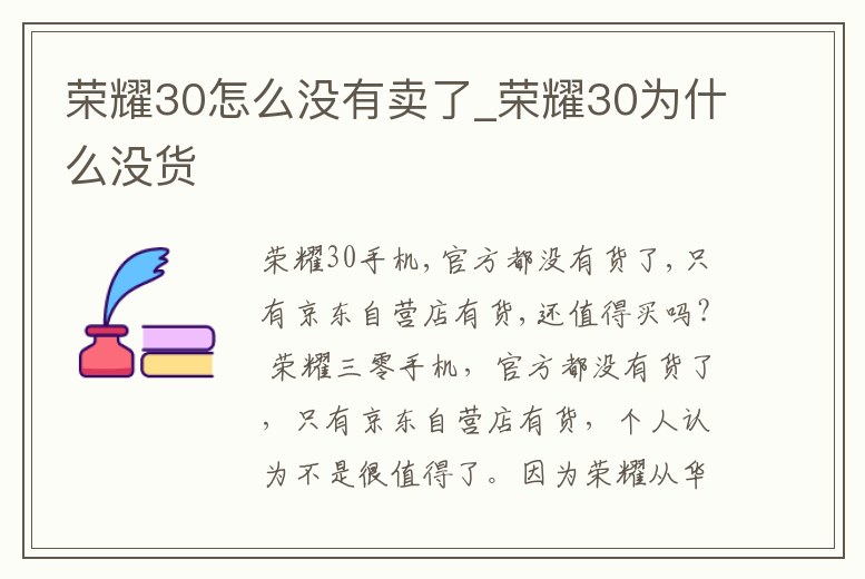榮耀30怎么沒有賣了_榮耀30為什么沒貨