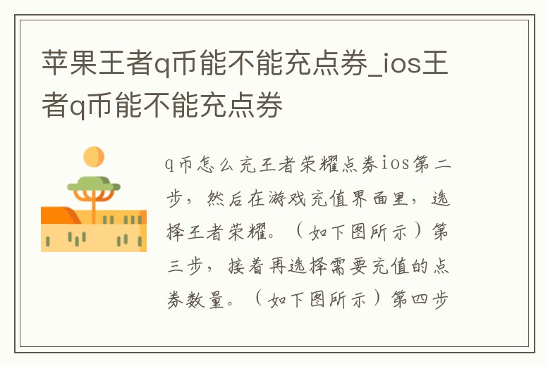 蘋果王者q幣能不能充點券_ios王者q幣能不能充點券