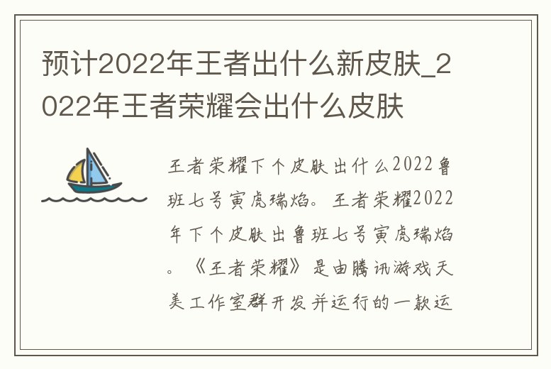 預計2022年王者出什么新皮膚_2022年王者榮耀會出什么皮膚