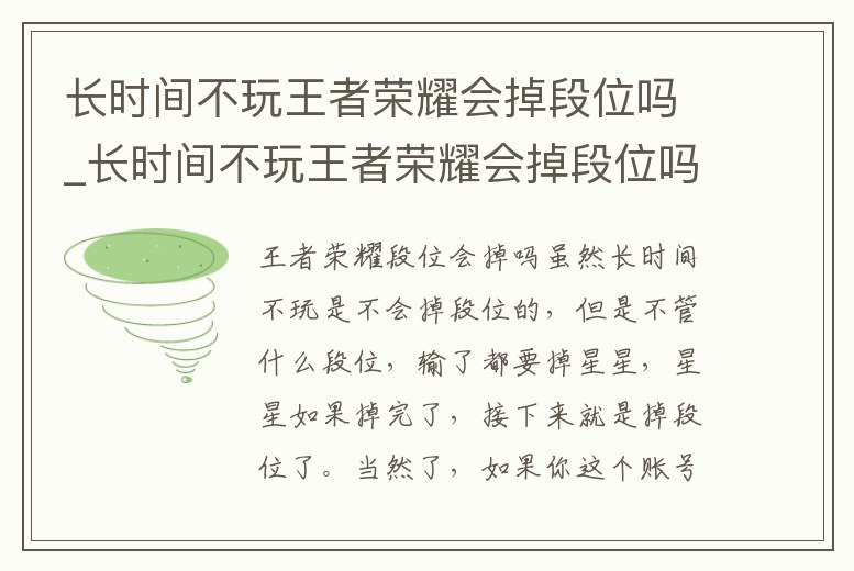 長(zhǎng)時(shí)間不玩王者榮耀會(huì)掉段位嗎_長(zhǎng)時(shí)間不玩王者榮耀會(huì)掉段位嗎