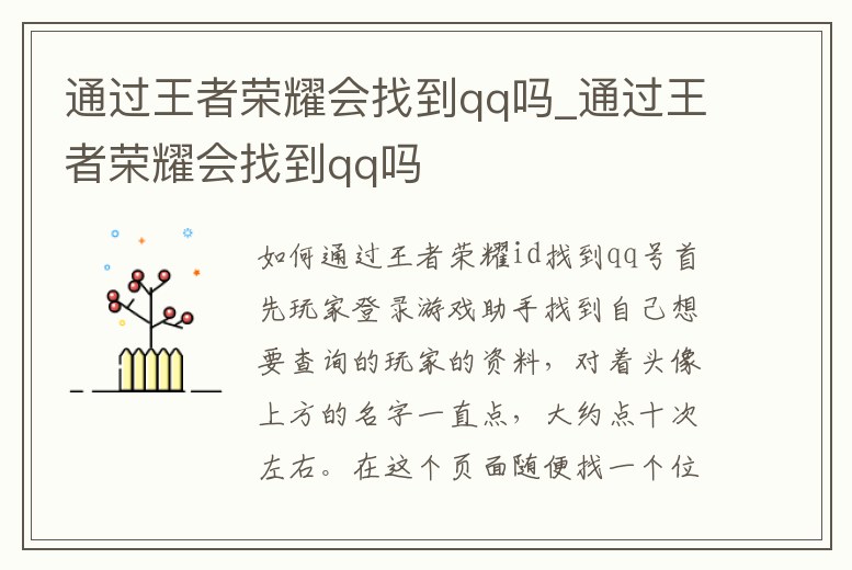 通過王者榮耀會找到qq嗎_通過王者榮耀會找到qq嗎