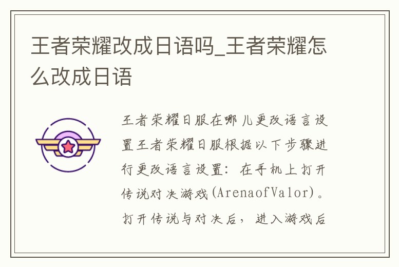- 王者榮耀改成日語(yǔ)嗎_王者榮耀怎么改成日語(yǔ)