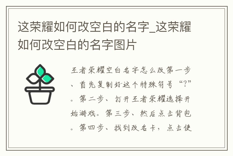 這榮耀如何改空白的名字_這榮耀如何改空白的名字圖片