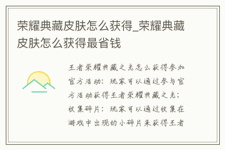 榮耀典藏皮膚怎么獲得_榮耀典藏皮膚怎么獲得最省錢