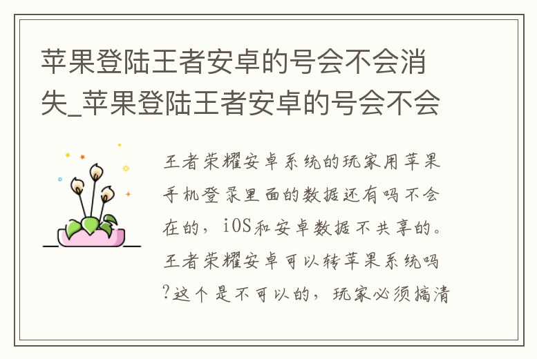 蘋果登陸王者安卓的號會不會消失_蘋果登陸王者安卓的號會不會消失記錄