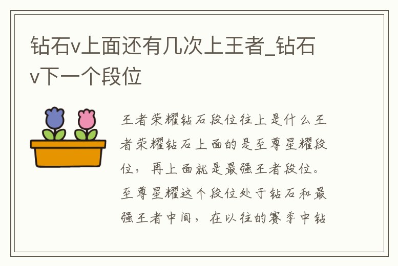 鉆石v上面還有幾次上王者_鉆石v下一個段位