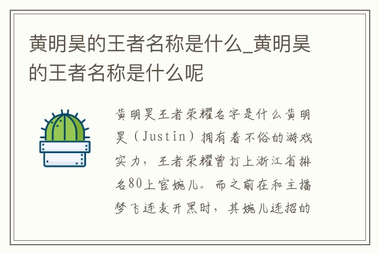 黃明昊的王者名稱是什么_黃明昊的王者名稱是什么呢