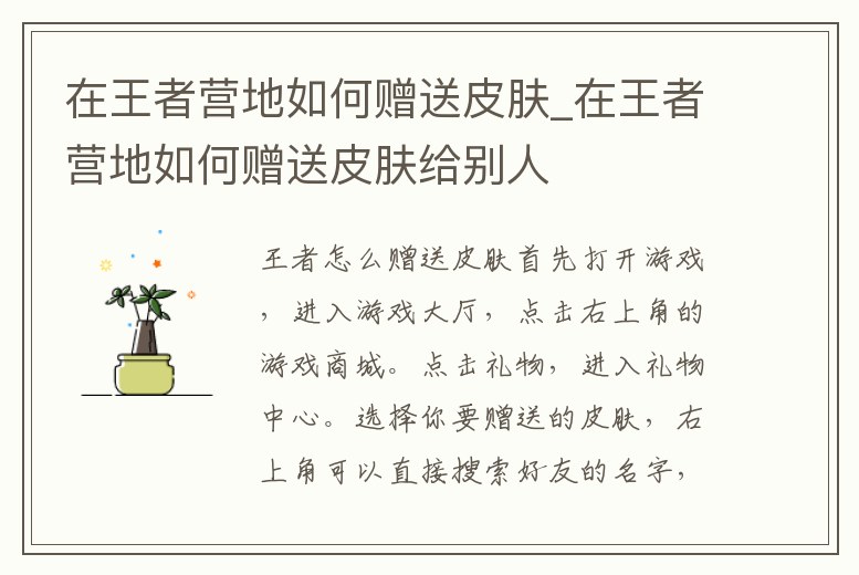 在王者營地如何贈送皮膚_在王者營地如何贈送皮膚給別人