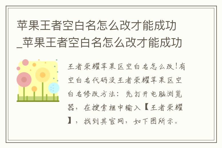 蘋果王者空白名怎么改才能成功_蘋果王者空白名怎么改才能成功使用
