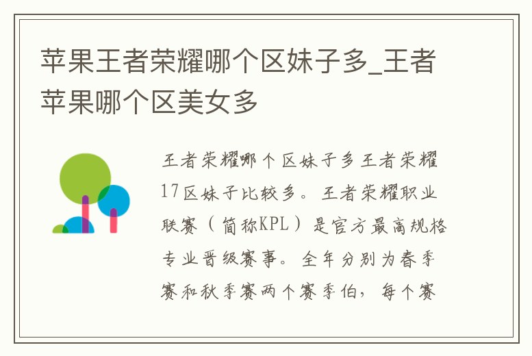 蘋果王者榮耀哪個區(qū)妹子多_王者蘋果哪個區(qū)美女多