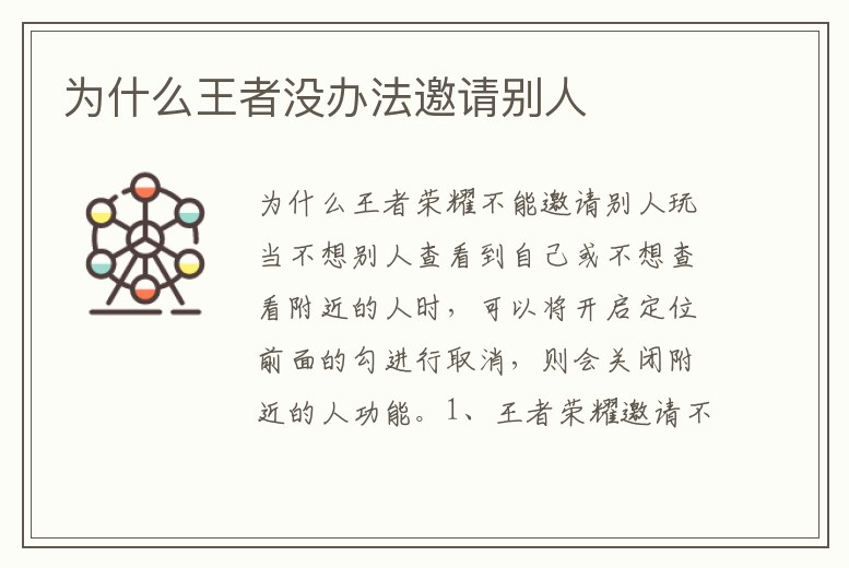 - 為什么王者沒(méi)辦法邀請(qǐng)別人