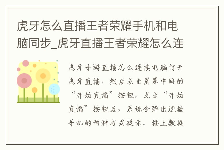虎牙怎么直播王者榮耀手機和電腦同步_虎牙直播王者榮耀怎么連接電腦