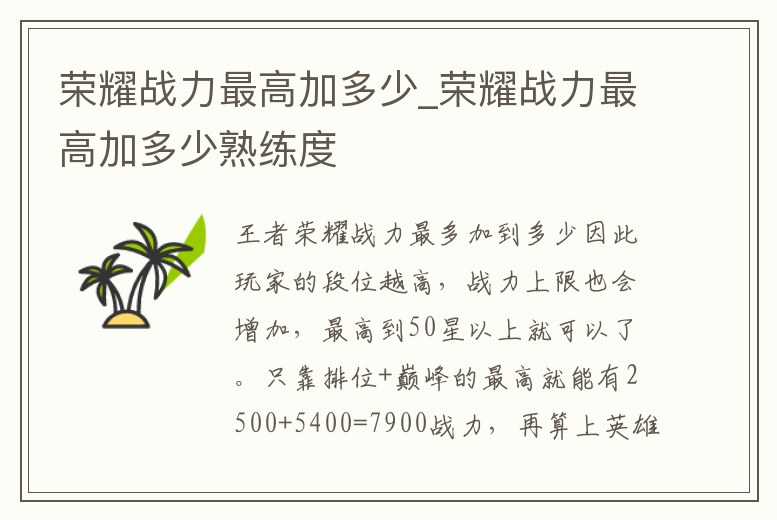 榮耀戰(zhàn)力最高加多少_榮耀戰(zhàn)力最高加多少熟練度