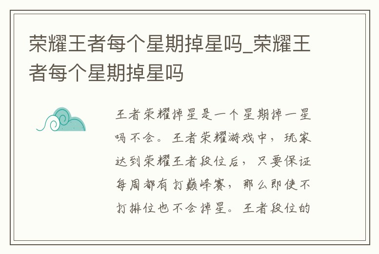榮耀王者每個星期掉星嗎_榮耀王者每個星期掉星嗎