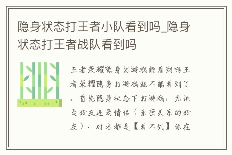 隱身狀態(tài)打王者小隊看到嗎_隱身狀態(tài)打王者戰(zhàn)隊看到嗎